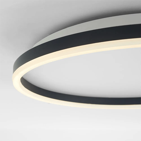 Plafonnier rond équipé de LED peut-être monté au plafond . Corps en métal et diffuseur en acrylique offrant une lumière douce et homogène, en blanc chaud 3000K. Finition blanc mat.