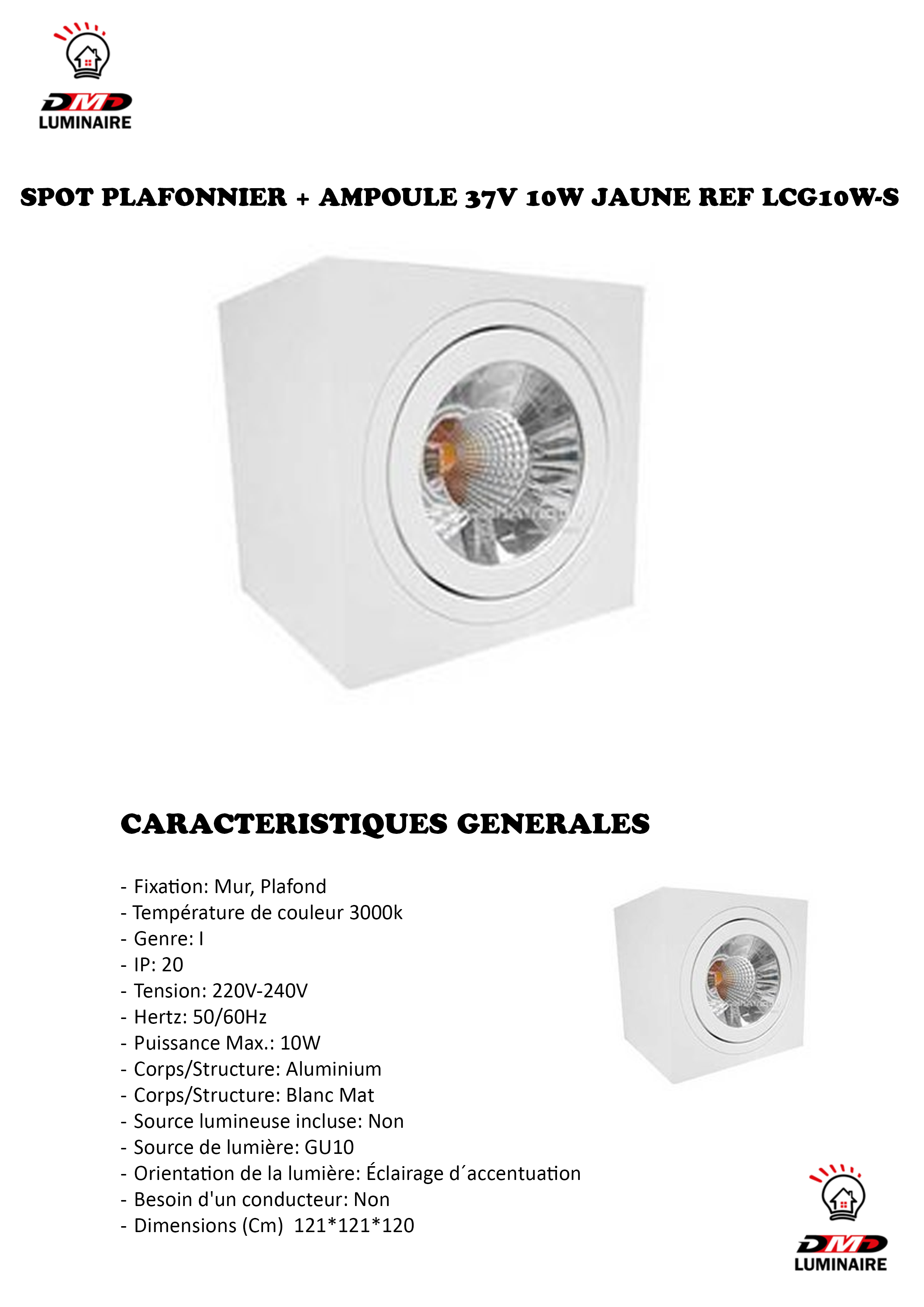 – Source de lumière : GU10