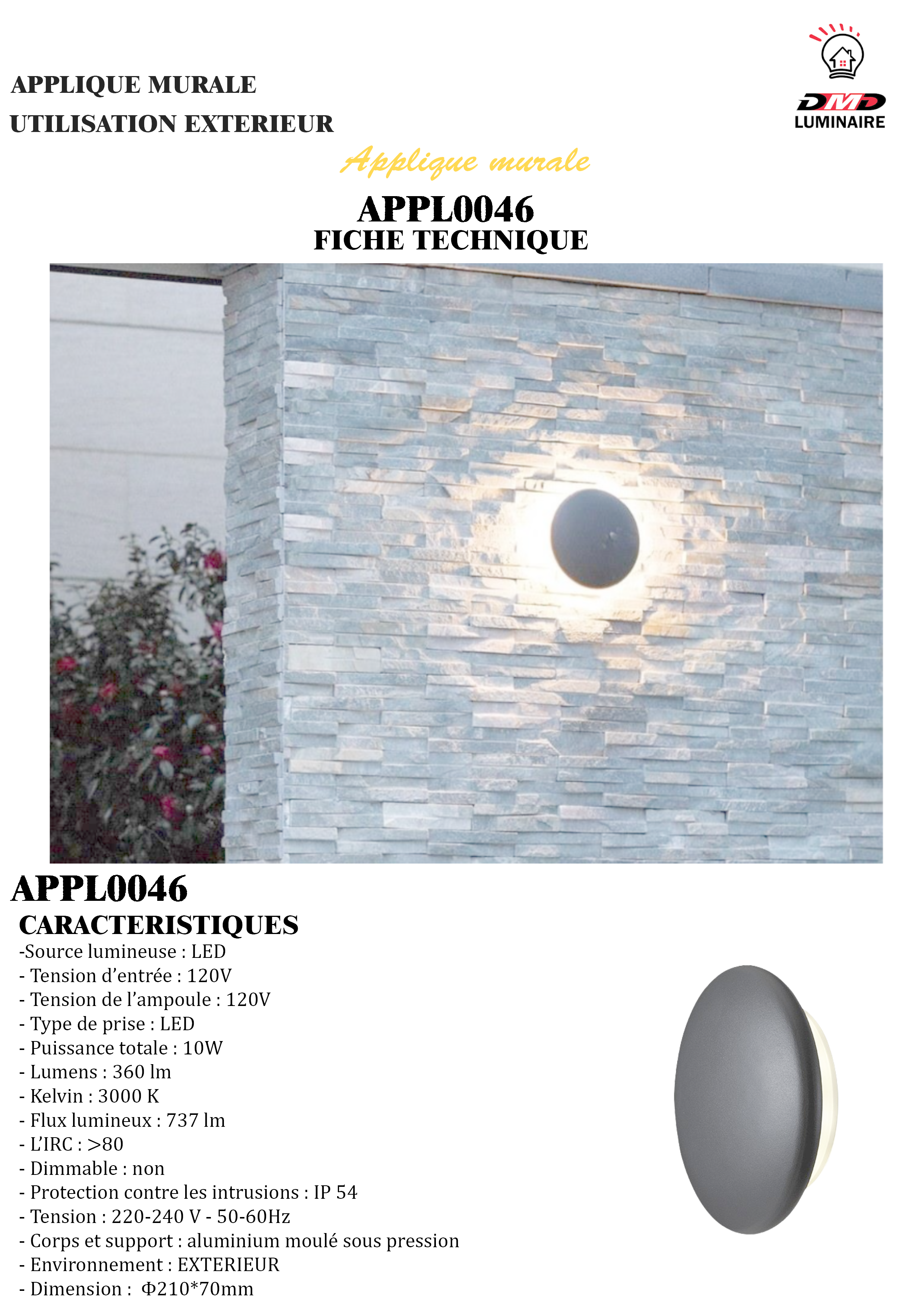 APPLIQUE MURALE D’EXTERIEUR CIRCULAIRE IP54-10W