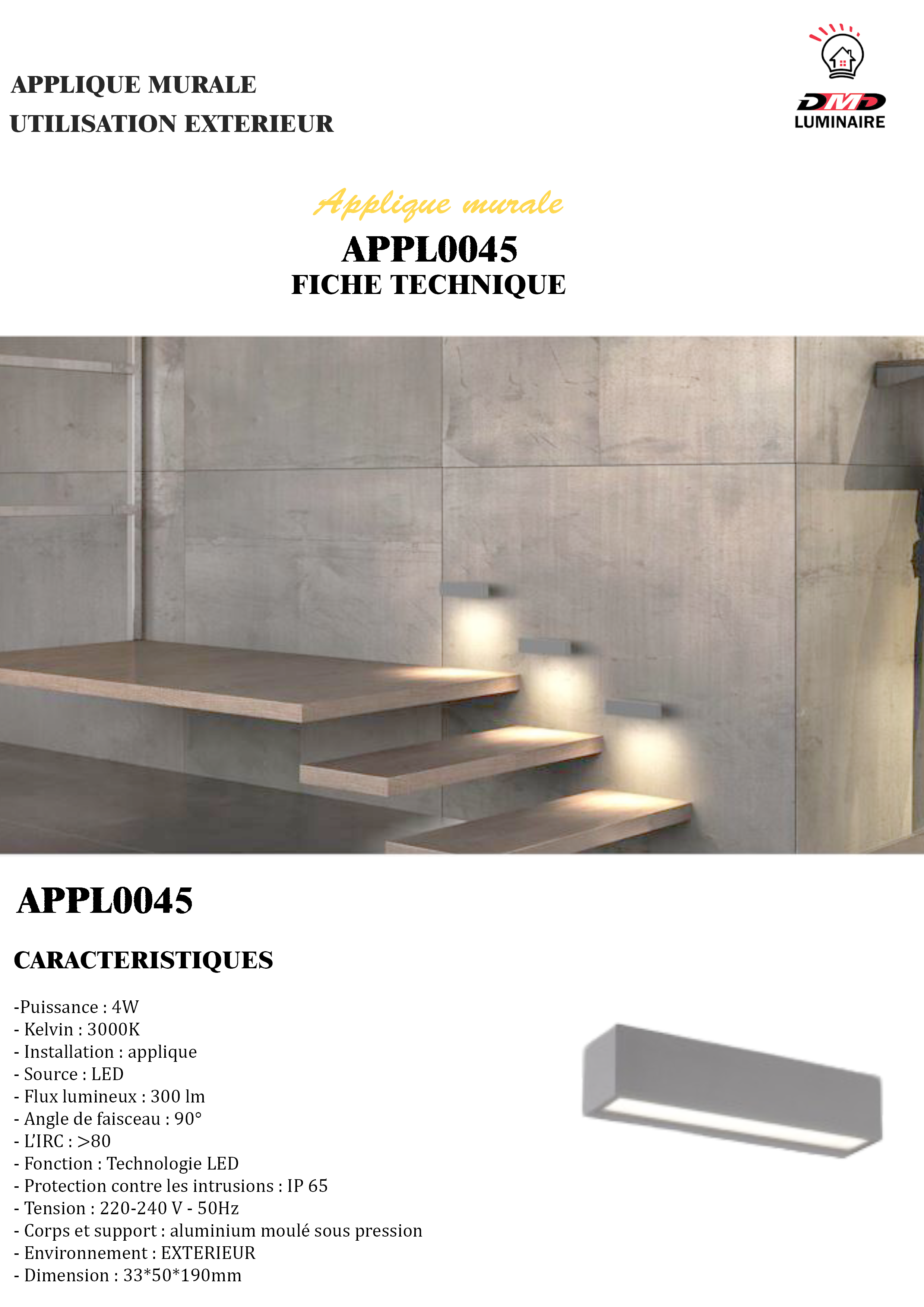 APPLIQUE MURALE INTERIEUR-EXTERIEUR LED IP65