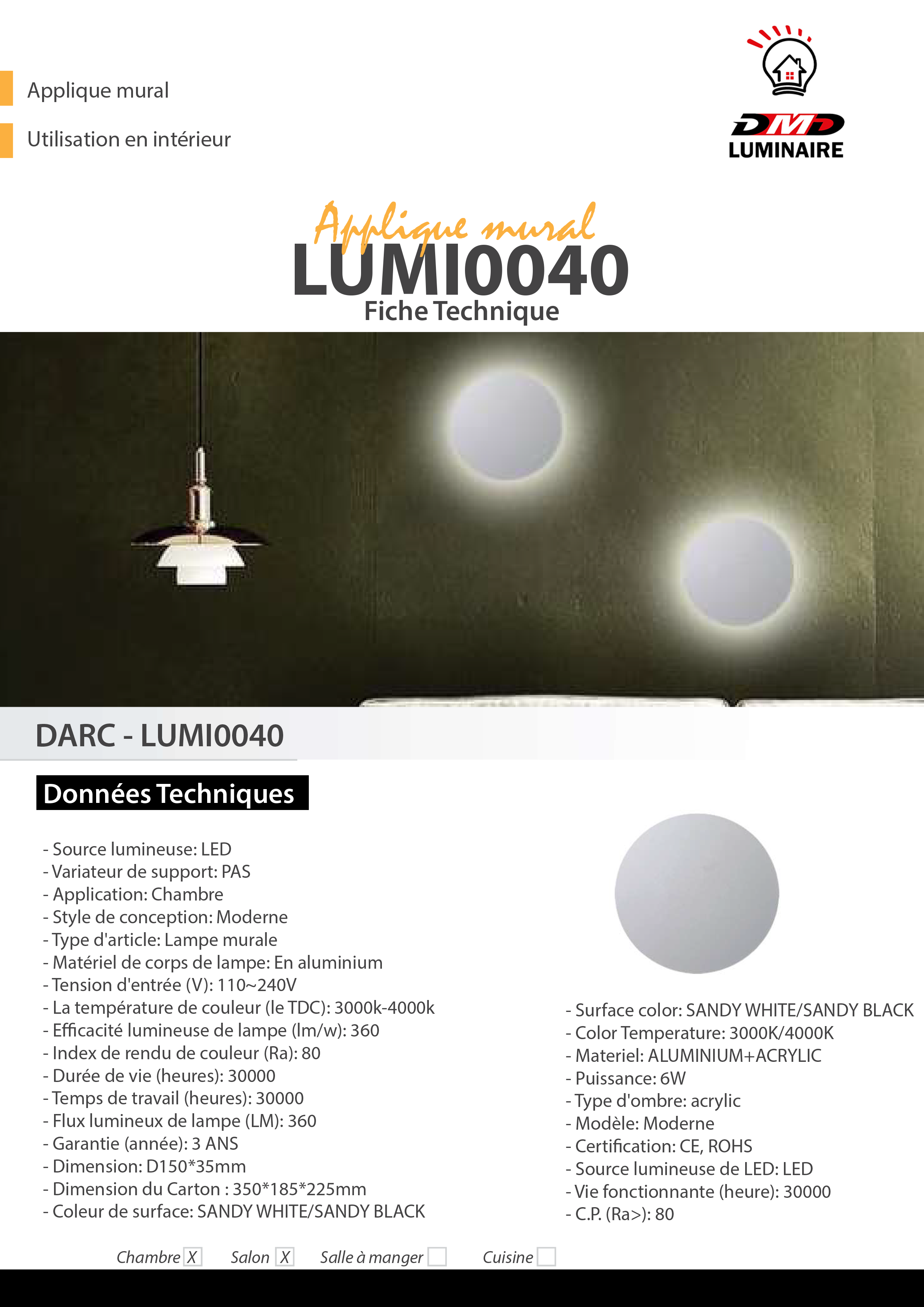 Applique murale de style moderne idéale pour l’éclairage décoratif. L’applique murale circulaire en sable blanc incarne la simplicité et l’élégance. Sa forme ronde et épurée crée un effet visuel apaisant tout en diffusant une lumière douce et agréable. Parfaite pour ajouter une touche de luminosité subtile à n’importe quel espace, cette applique murale en sable blanc est un choix moderne et minimaliste pour l’éclairage et la décoration. Ce luminaire a un indice de protection IP 20 et un isolement de classe I.