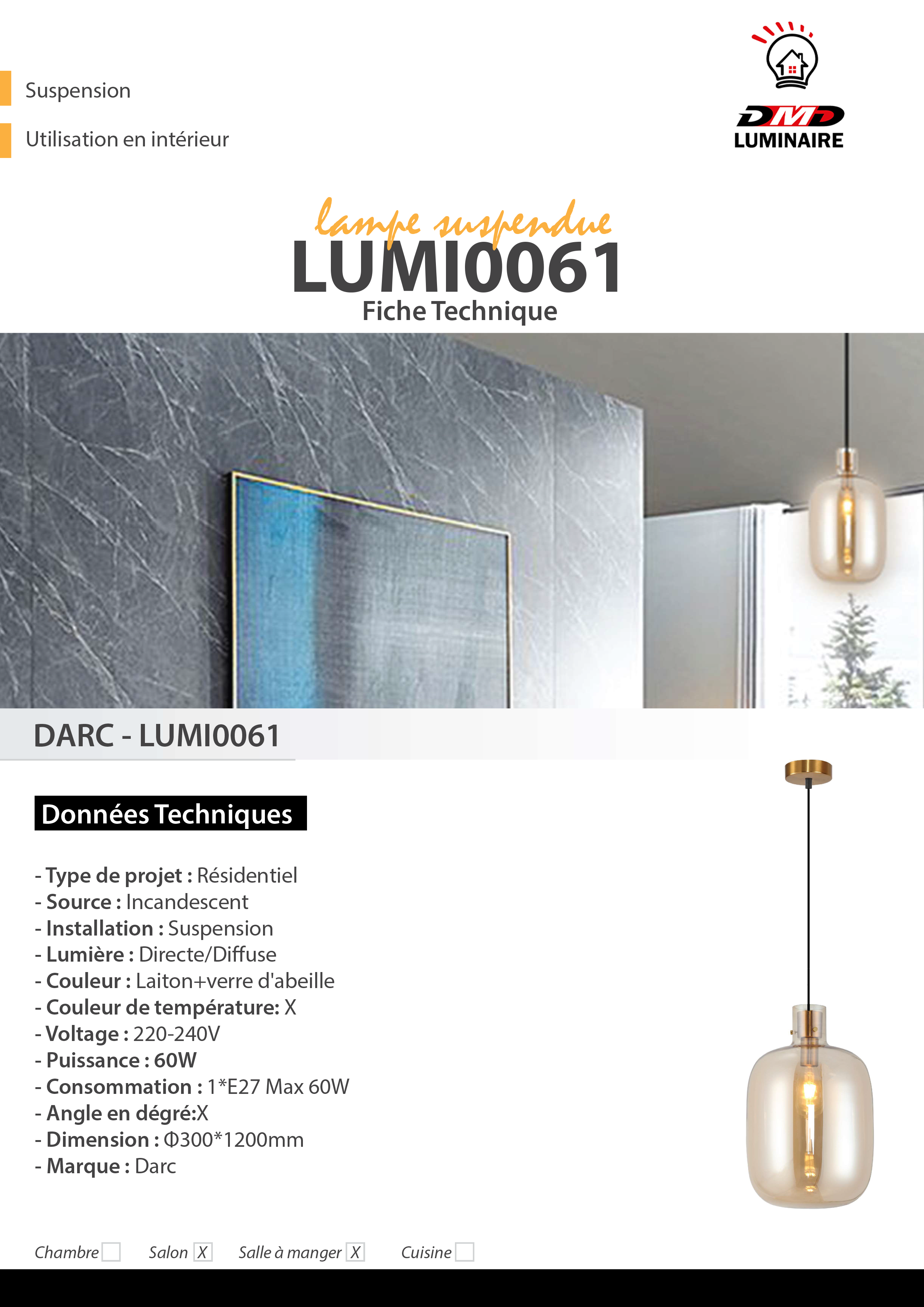 – Consommation : 1*E27 Max 60W