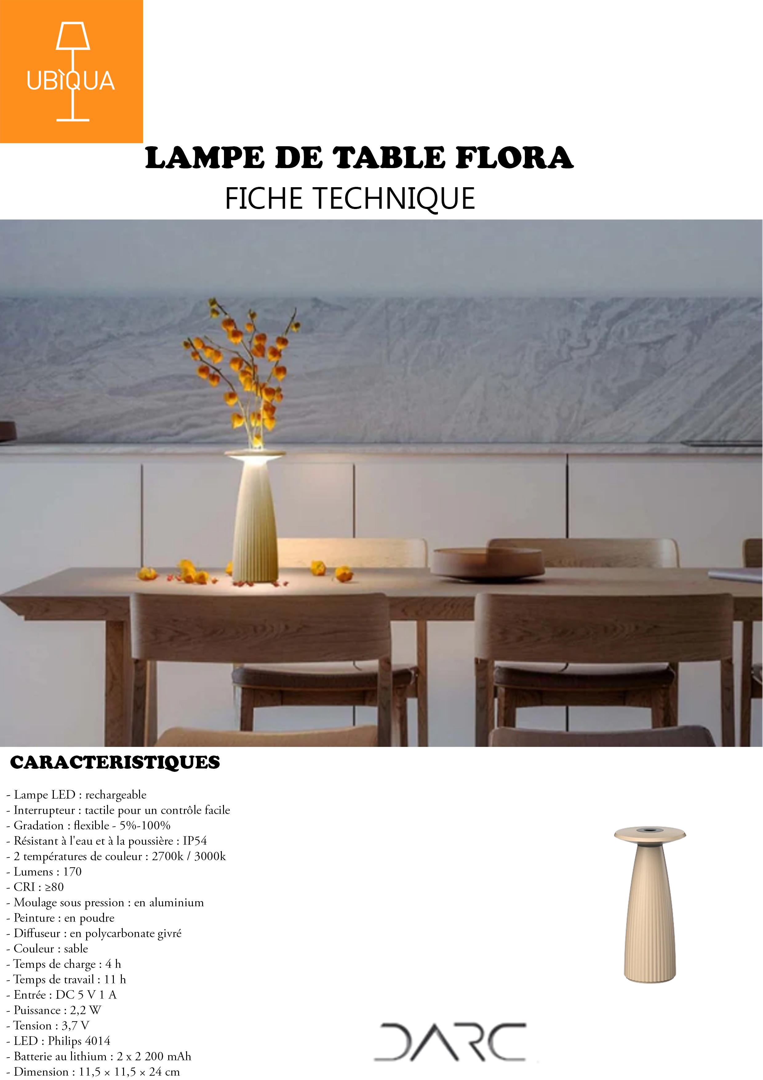 Conçue dans un souci de polyvalence, la lampe résiste à l’eau et à la poussière, ce qui la rend idéale pour une utilisation en intérieur comme en extérieur.