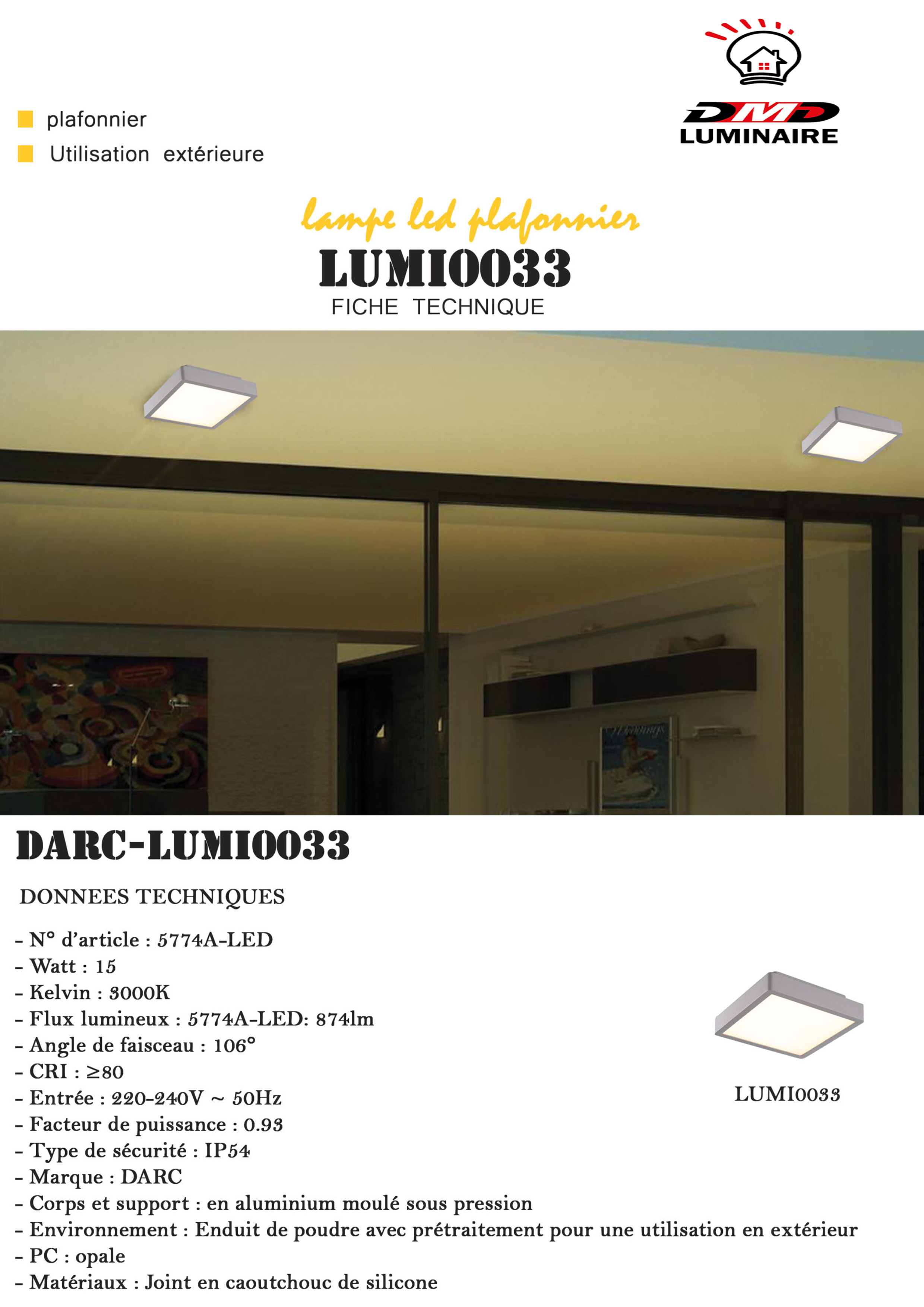 Le luminaire LED carré 15W HILITE est un éclairage économique, avec une faible consommation d’énergie et une durée de vie plus longue que les lampes traditionnelles. Il est facile à installer et peut être utilisé dans une variété d’applications telles que l’éclairage d’extérieure, terrasse…