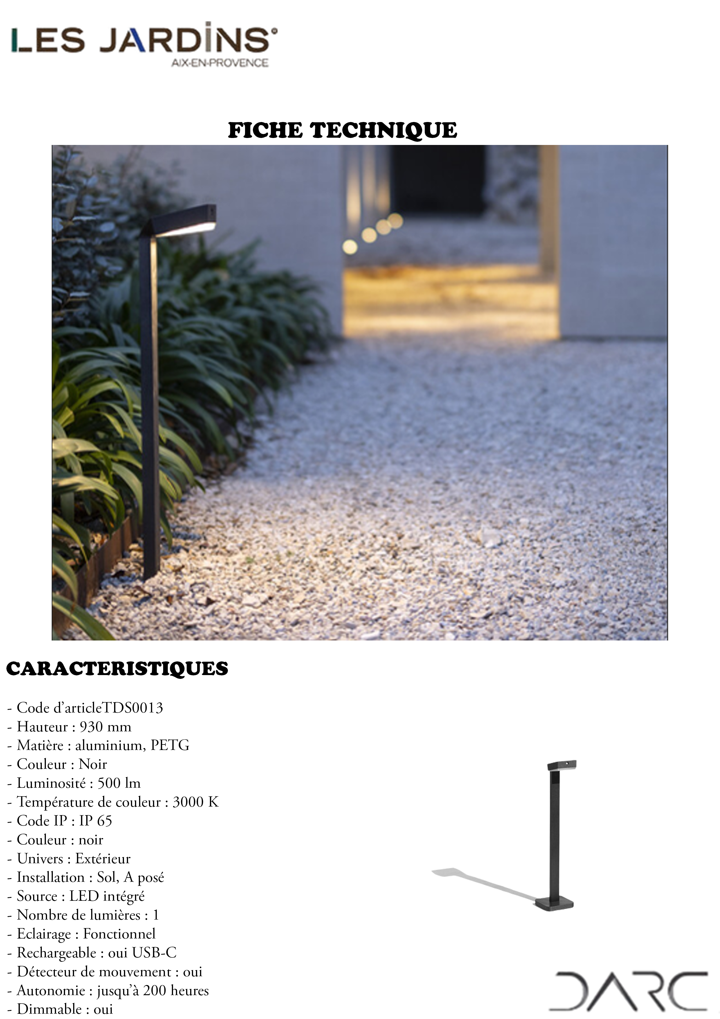 La borne Kobra offre un éclairage vers le bas, idéal pour baliser un cheminement. Elle permettra d’avoir un éclairage puissant et optimal assurant la sécurité dans vos allées, tout en délimitant les espaces de circulation. Fabriquée en aluminium et PETG recyclé, elle est disponible en finition noire ou corten pour s’accorder au mieux au style de votre demeure. Facile d’utilisation cette borne extérieure se recharge avec l’énergie solaire qu’elle emmagasine durant la journée pour briller ensuite toute la nuit. Kobra est la borne qu’il vous faut pour créer un jardin à la fois esthétique et sécurisant, où la lumière et la nature se marieront en parfaite harmonie.