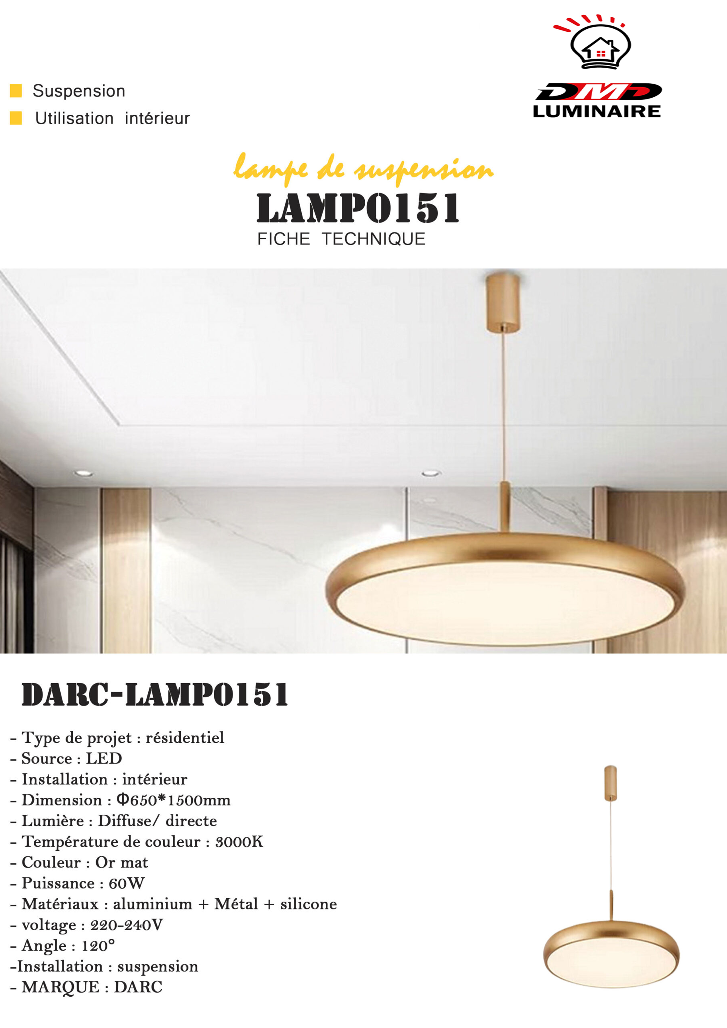 LAMPE DE SUSPENSION /Or Mat /60W: La combinaison d’une forme minimaliste avec une finition OR ajoutera un style moderne incroyable à l’intérieur. Le lustre s’occupera du meilleur éclairage possible de la pièce.