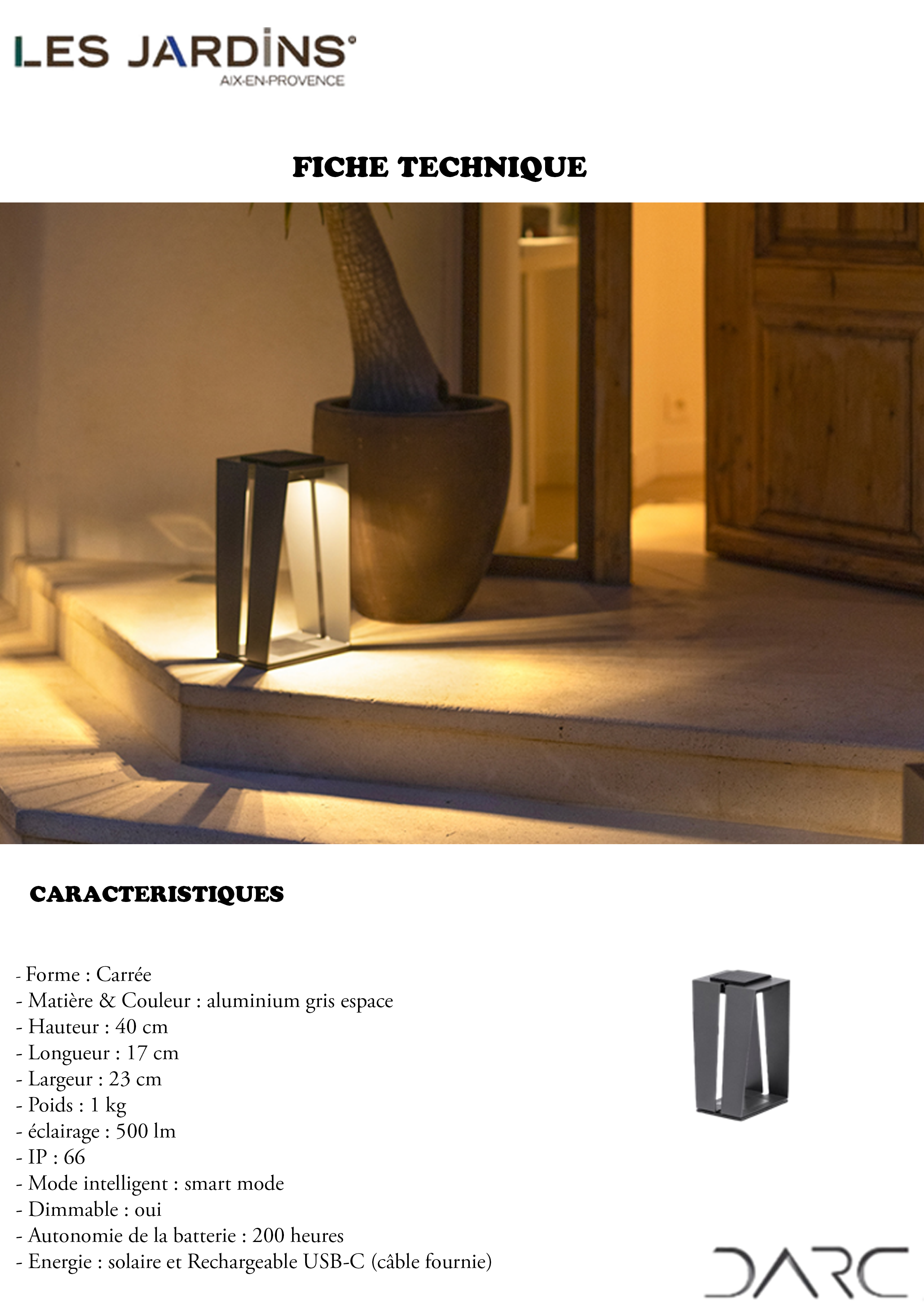 – Energie : solaire et Rechargeable USB-C (câble fournie)