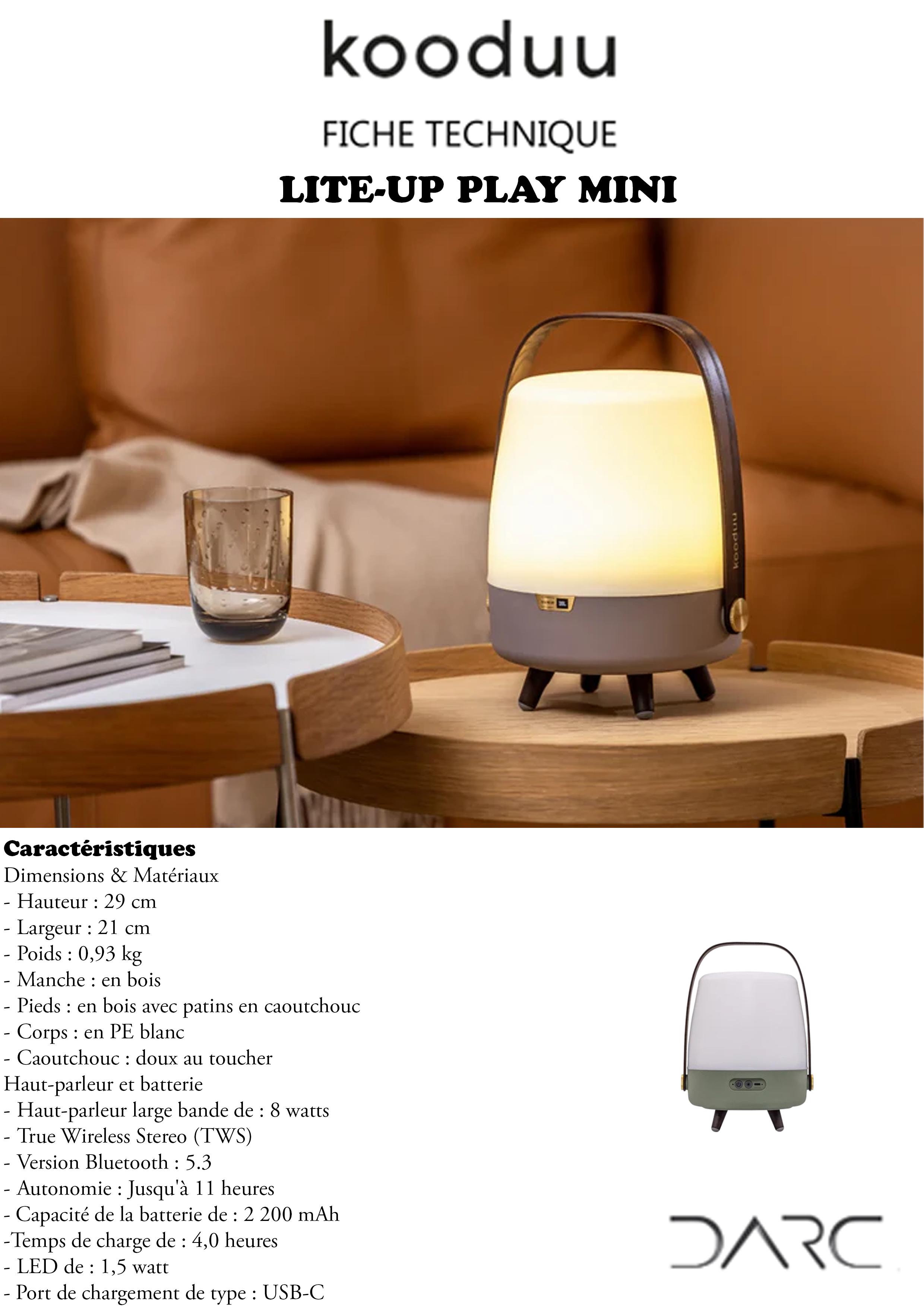 Créez une ambiance pour des moments esthétiques, relaxants et joyeux illuminés par la beauté du Kooduu avec vos bandes sonores préférées en son haute-fidélité délivré par JBL. Disponible en 3 couleurs : Terre, Pétrole et Bleu Océan.