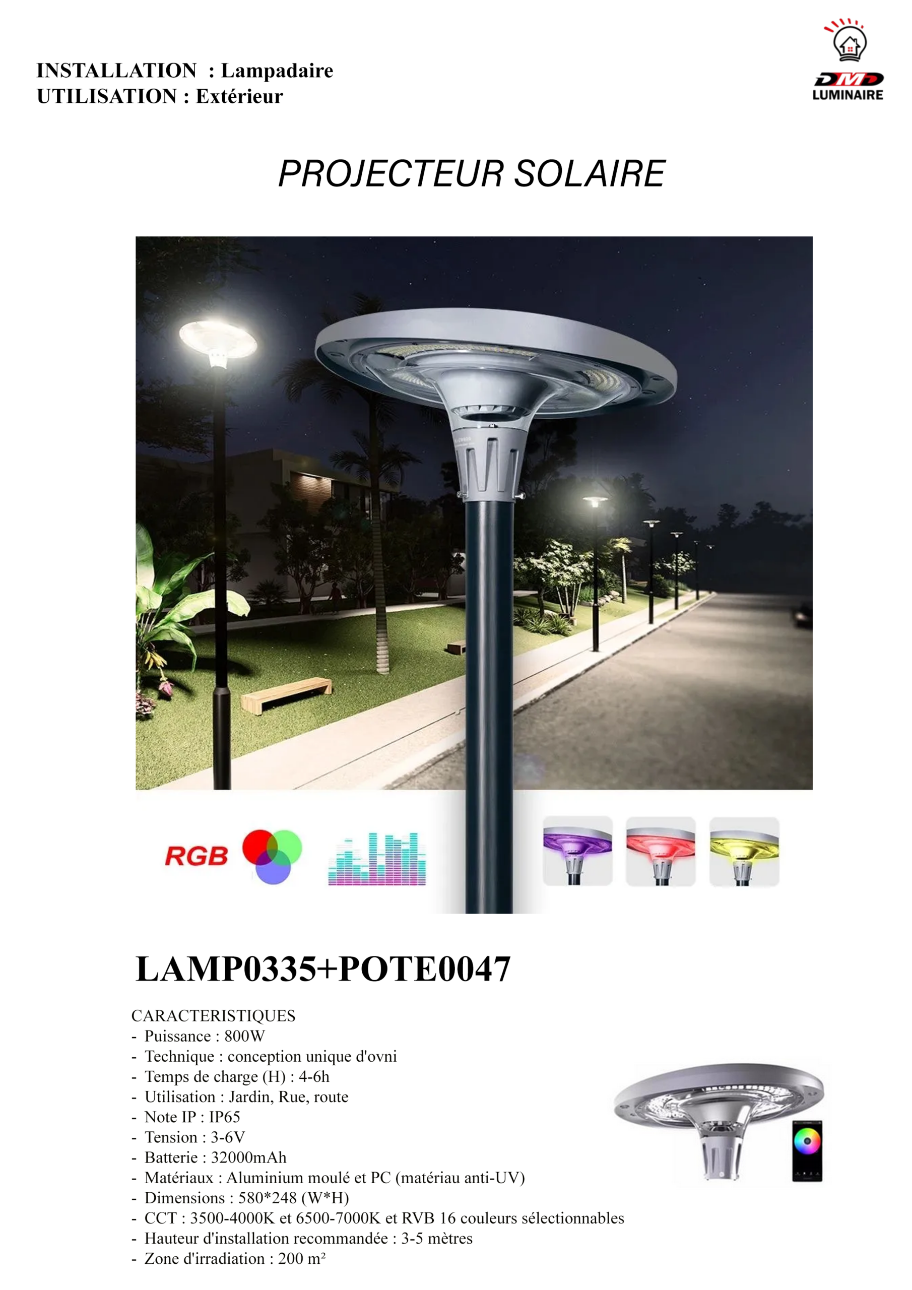 Catégories Extérieur, Indice de Protection (IP65), Jardin, Lampadaire, Projecteur, route, Solaire