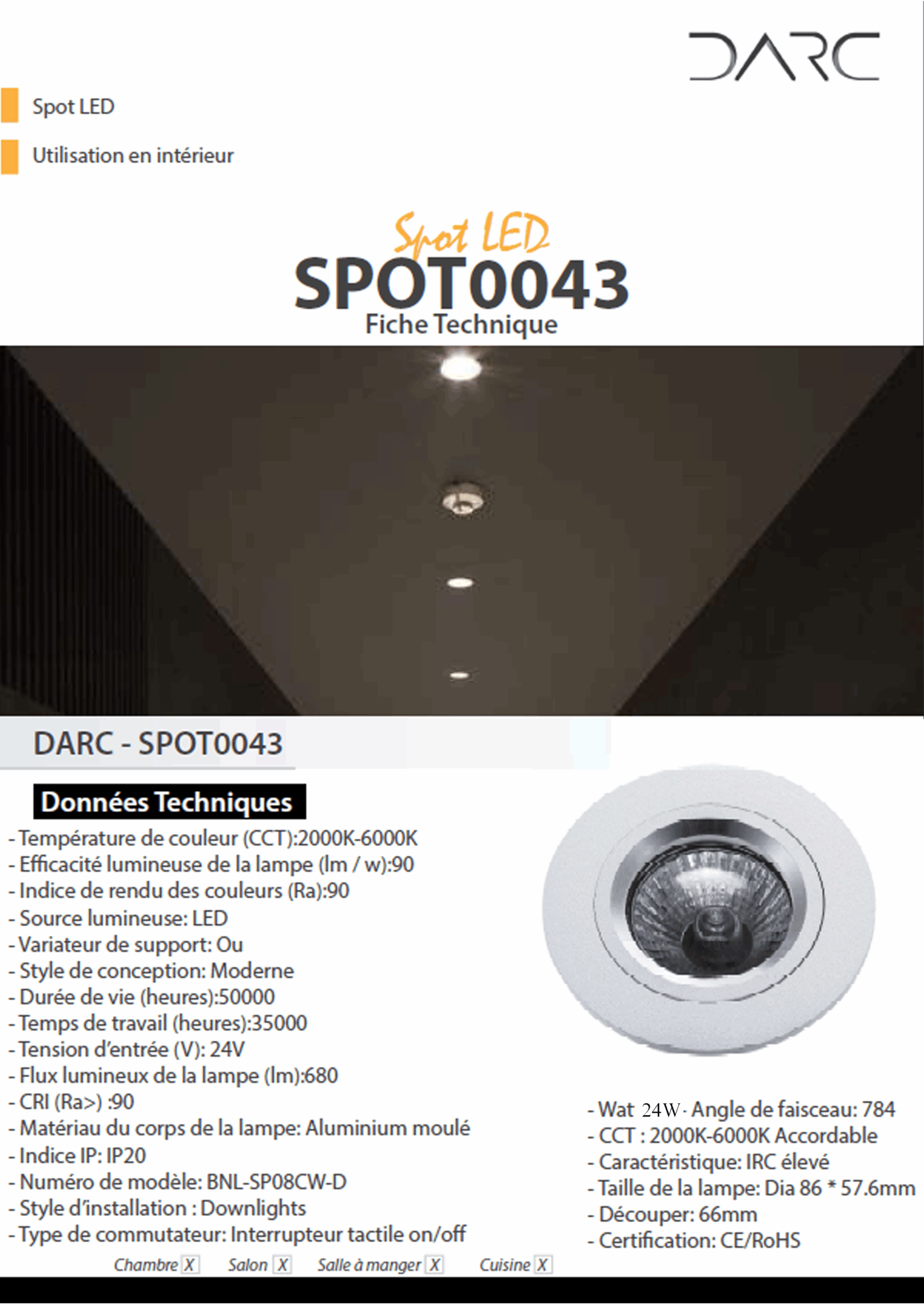 SPOT LED PLAFONNIER 24W F-6 : Lampe plafonnier orientable avec une bonne puissance d’éclairage ce petit spot est idéale pour vos projets d’hôtels, hôpitaux, centre commerciaux. Encastré dans le plafond, vous n’aurez aucune zone d’ombre !