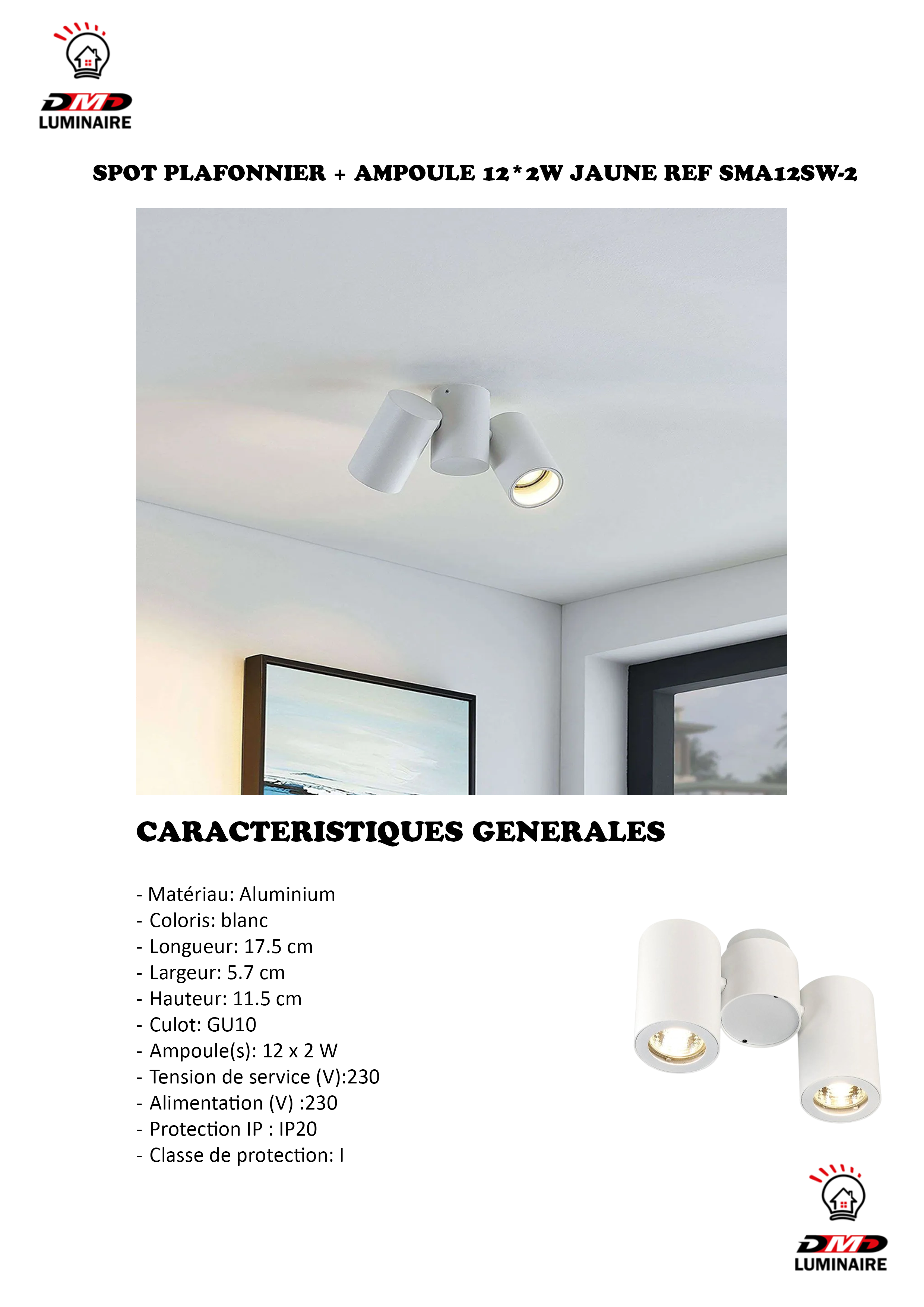 SPOT PLAFONNIER + AMPOULE 12*2W JAUNE