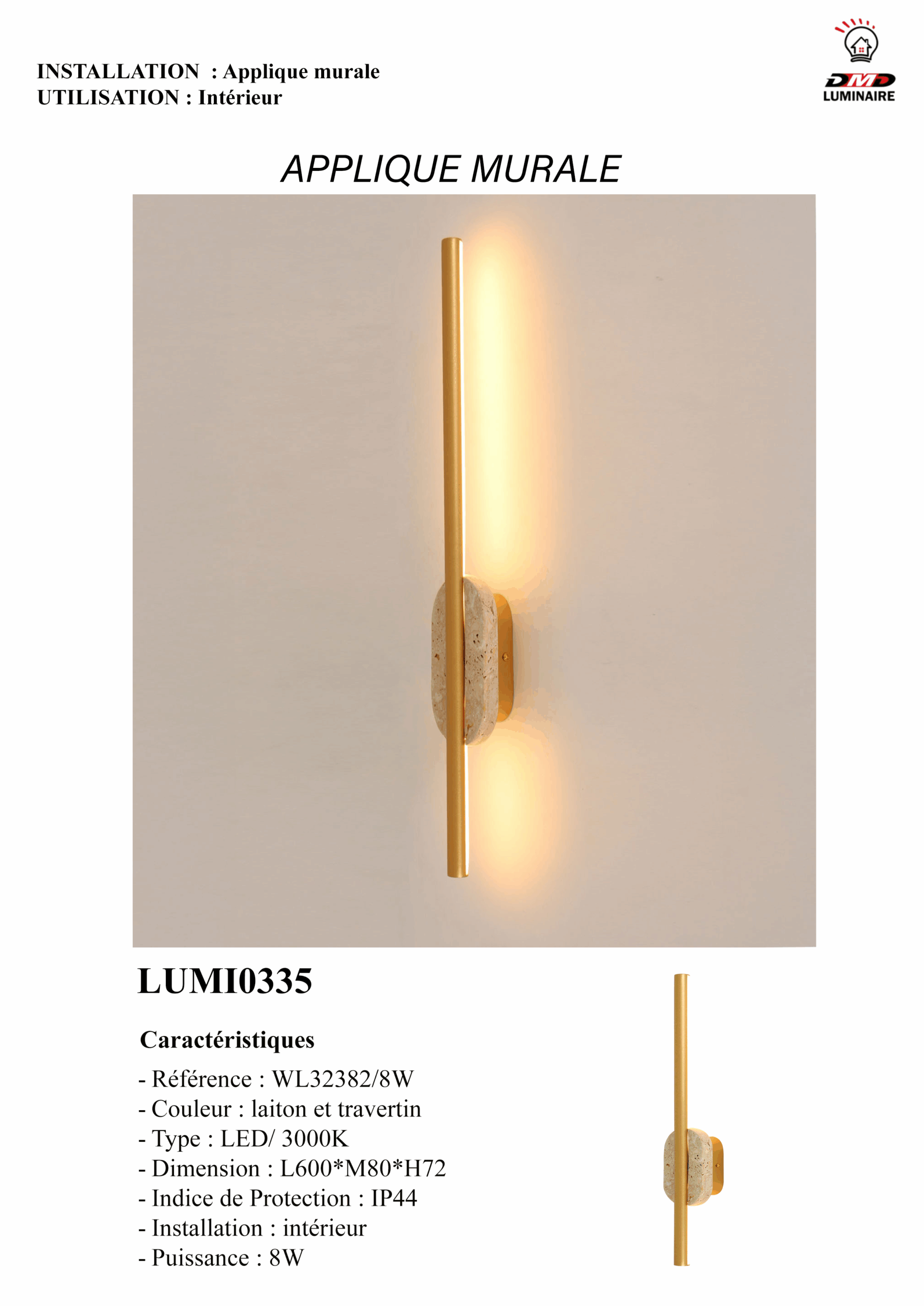 Cette applique murale à la fois moderne, sophistiquée et polyvalente, se distingue par la qualité de ses matériaux : son corps est composé de métal et de pierre de travertin, et sa finition est d’une élégante couleur dorée. Grâce à son indice de protection IP44, elle convient aux pièces humides comme les salles de bains ou les couloirs. Sa forme minimaliste, la texture de sa pierre naturelle et sa finition métallique légèrement brillante lui permettent de s’intégrer parfaitement dans des intérieurs à la fois modernes et chaleureux, où l’éclairage et une touche esthétique sont essentiels.