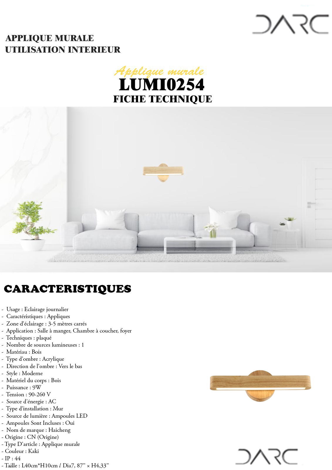 – Type D’article : Applique murale