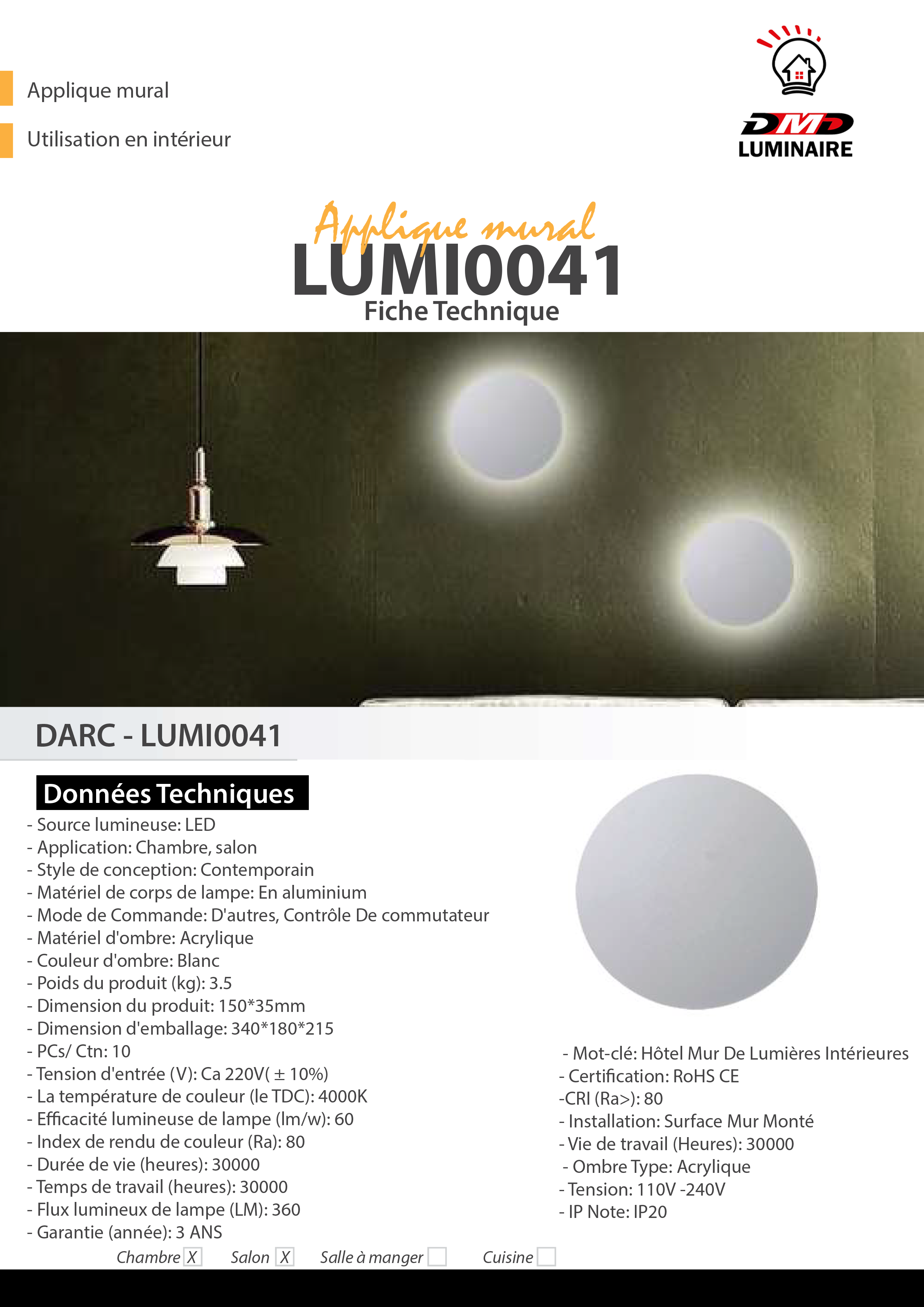 Applique murale de style moderne idéale pour l’éclairage décoratif. L’applique murale circulaire en sable blanc incarne la simplicité et l’élégance. Sa forme ronde et épurée crée un effet visuel apaisant tout en diffusant une lumière douce et agréable. Parfaite pour ajouter une touche de luminosité subtile à n’importe quel espace, cette applique murale en sable blanc est un choix moderne et minimaliste pour l’éclairage et la décoration. Ce luminaire a un indice de protection IP 20 et un isolement de classe I.