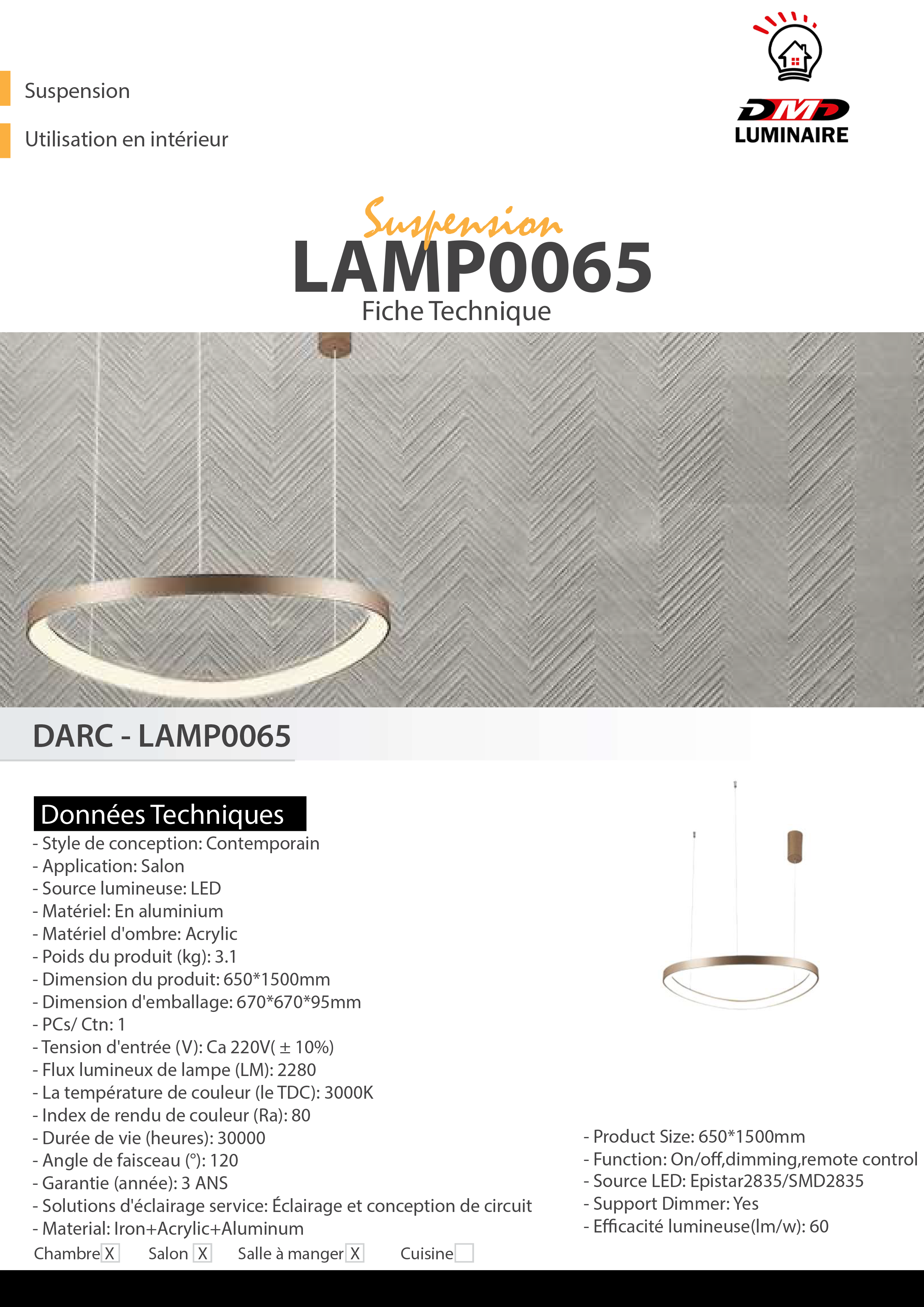 – Flux lumineux de lampe : 2280lm