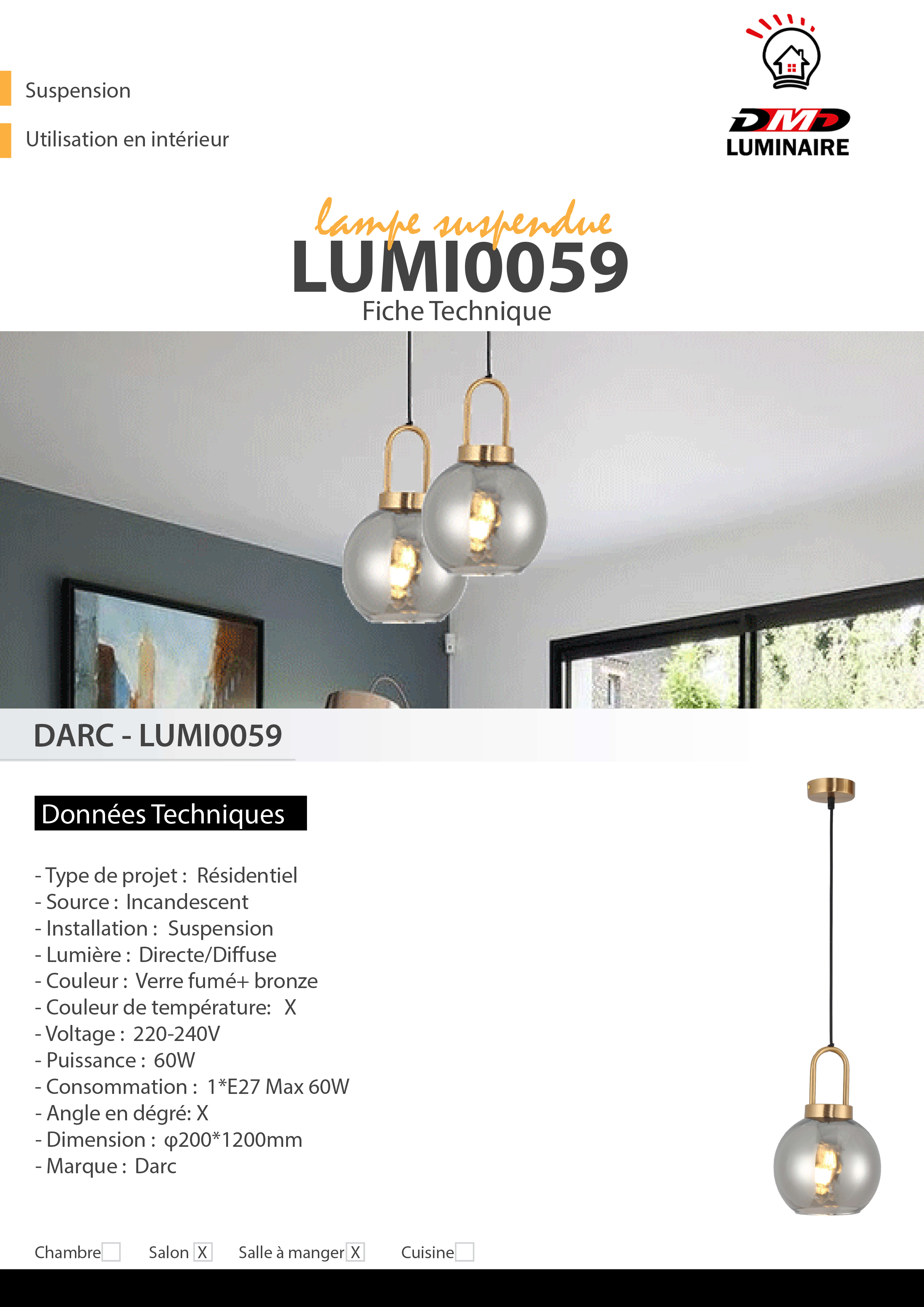 – Consommation : 1*E27 Max 60W