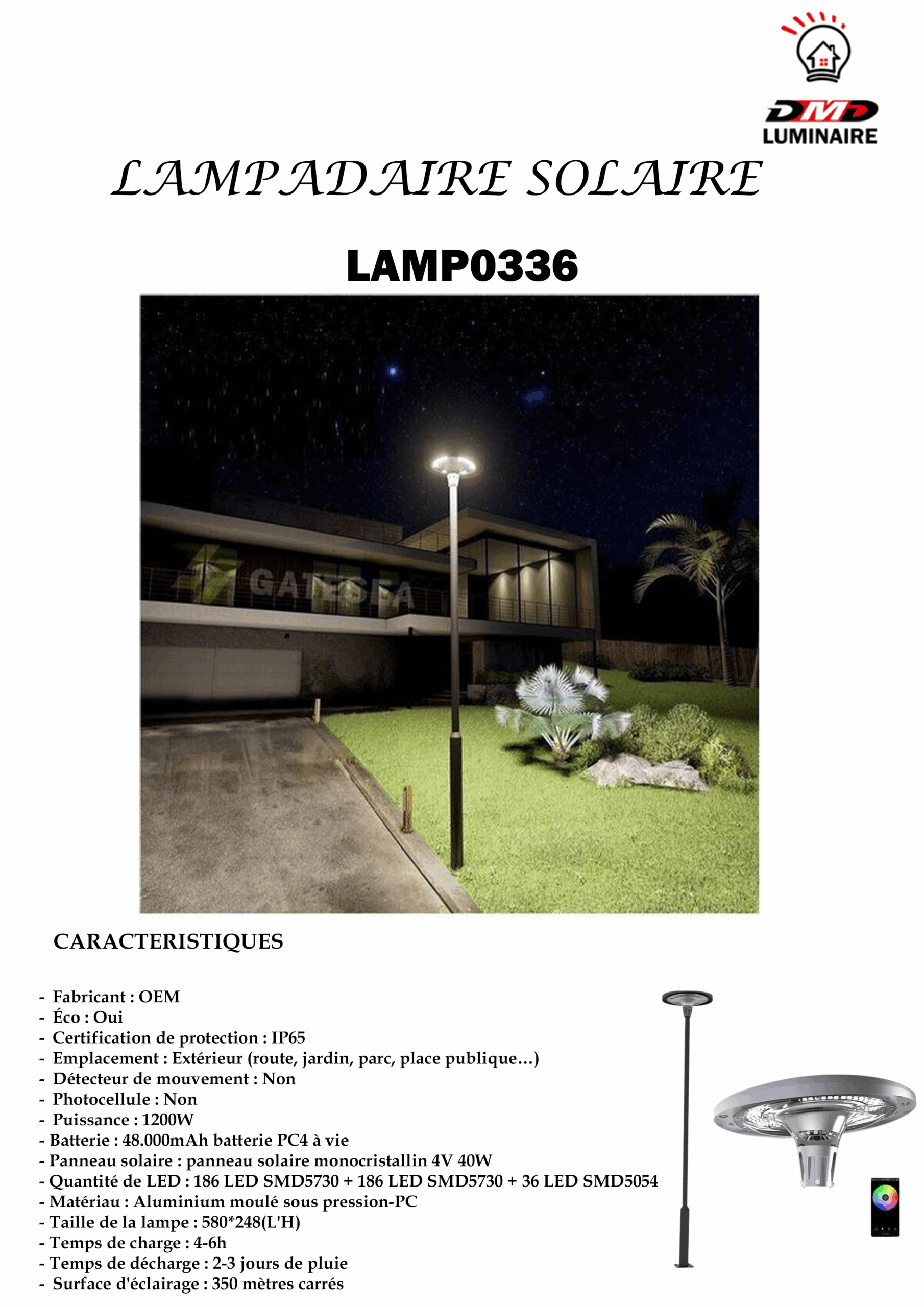 – Taille de la lampe : 580*248(L’H)