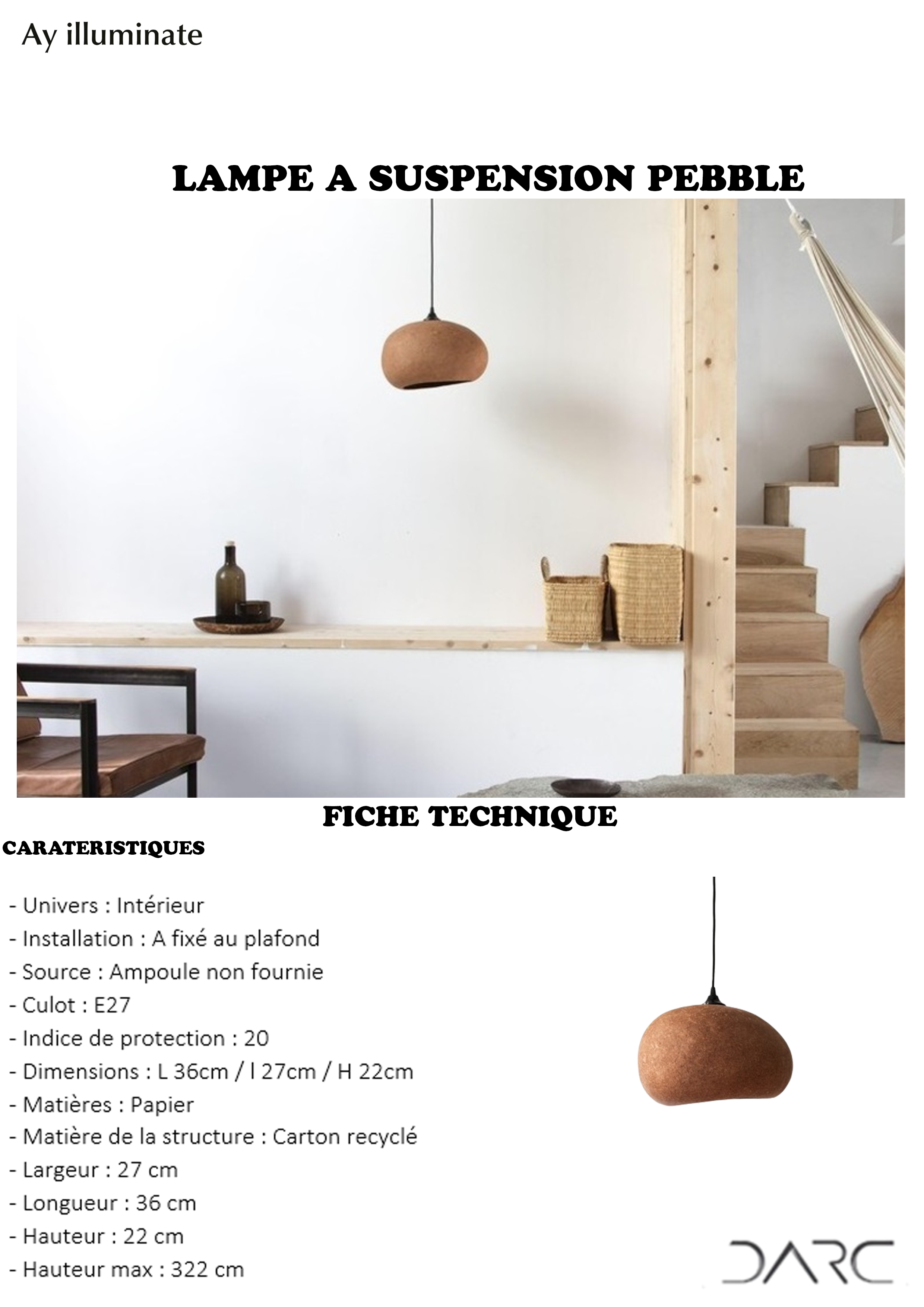 Ainsi, la suspension Pebble faite en carton recyclé symbolise parfaitement l’esprit de la marque. A la fois simple et douce, la Pebble arbore un style naturel et léger qui séduit.